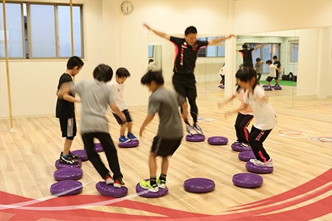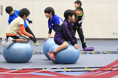 「サッカーで養える股関節を含めた下肢の操作能力」、「水泳で養える肩甲骨周囲筋のしなやかさ」「体操で養える体幹、上半身の基礎筋力、全身の柔軟性」など、運動の要素を凝縮したプログラムを行う事で、様々なスポーツを経験したのと同じような刺激を与える事ができるのです。