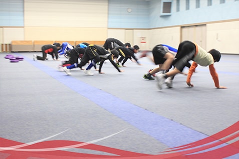 約10種類の基礎的なストレッチや体操は毎回行います。この時期に柔軟性を上げておく事は、長くスポーツを続ける上で非常に重要です。