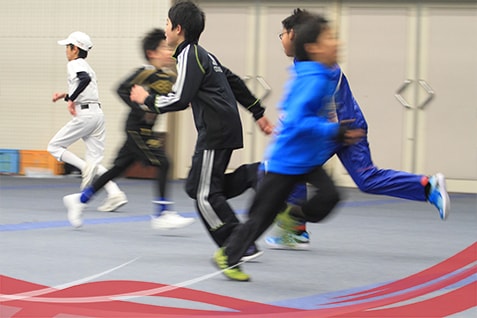走る能力は様々なスポーツにおいて必要不可欠です。鬼ごっこはもちろん、様々なメニューで、1時間のクラスの間に、「気づいたらかなり走っていた」というプログラムを組んでいます。