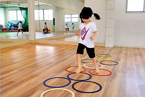 今では公園であまり⾒かけなくなったあそびのひとつ、ケンケンパ! なわとびなどに必要なタイミングやリズム感を養います。 足さばきが速くなるとかけっこも速く走れるようになります。