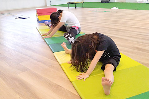 マット運動も苦手な子が多い種目のひとつ、小学校に上がる前に身体が固くなるのは運動不足などによる可動域が狭くなることが原因。 まだまだ骨が伸びる大切な時期に身体を柔らかく保つことが、成長期のケガや痛みの予防になります。