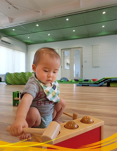 教室が始まる前に、色んな知育おもちゃで遊び緊張をほぐします。お友達を観察したり、お母さんの真似をしながら遊び方を学びます。色・形・感触で脳を刺激し、おもちゃの貸し借りを通じでコミュニケーション能力を育みます。講師が効果的な声かけや遊び方をレクチャ―しますので、まだおもちゃで遊んだことのないお子さんでも安心です。